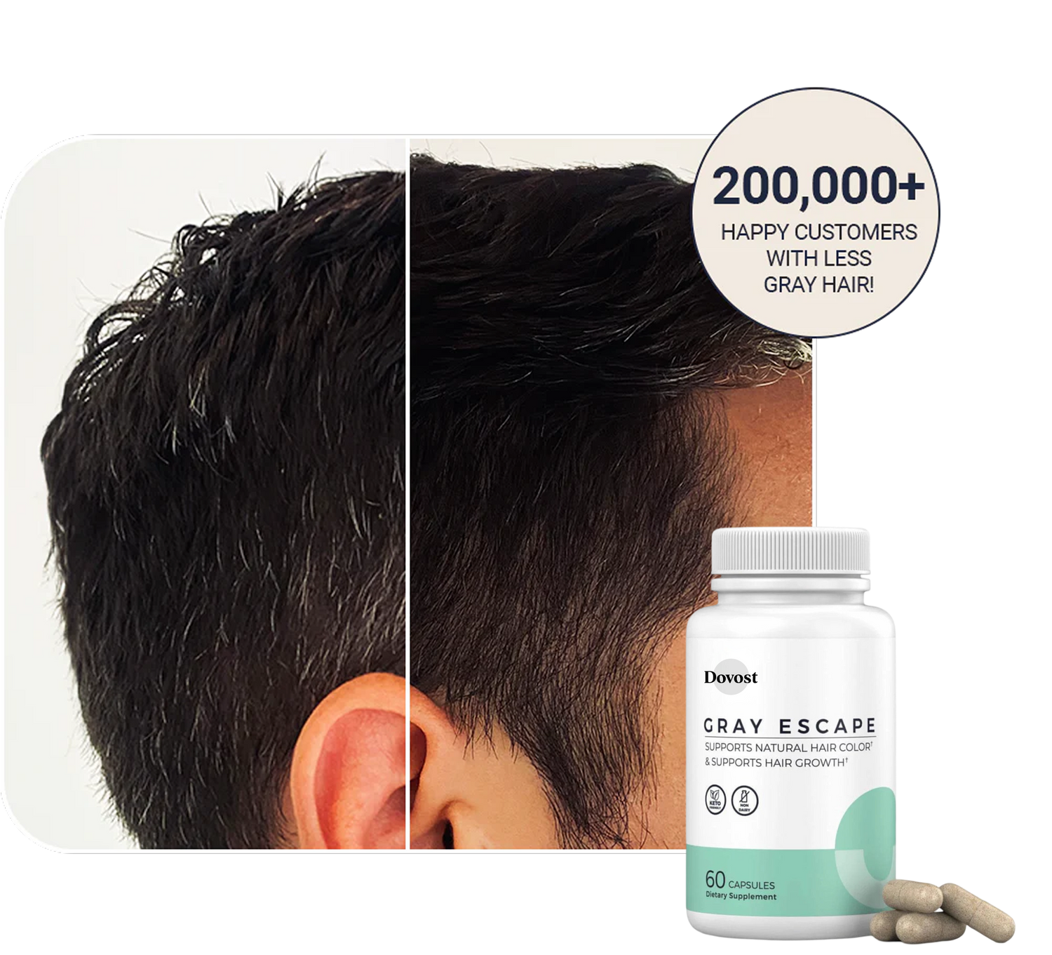 When gray hair appears too soon, it can shake your confidence. Gray Escape™ helps you take back control, supporting your natural color while improving your hair's overall health. When you look in the mirror, you’ll see the real you looking back!